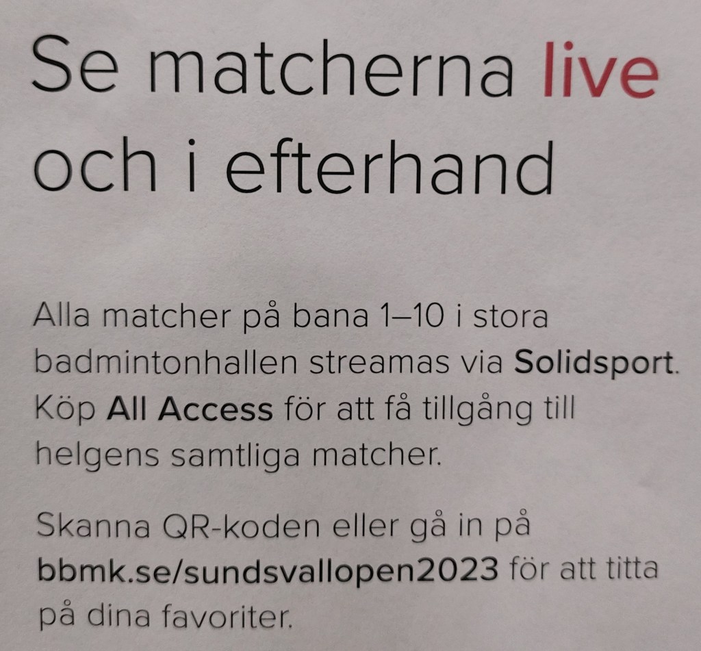 Se från Sundsvall på webben 25 februari, 202325 februari, 2023bmkorion Se matcherna från Sundsvall Open live och i efterhand på webben 🏸https://solidsport.com/sundsvallopen Dela detta: Dela på X (Öppnas i ett nytt fönster) X Dela på Facebook (Öppnas i ett nytt fönster) Facebook Gilla Laddar in … Relaterade