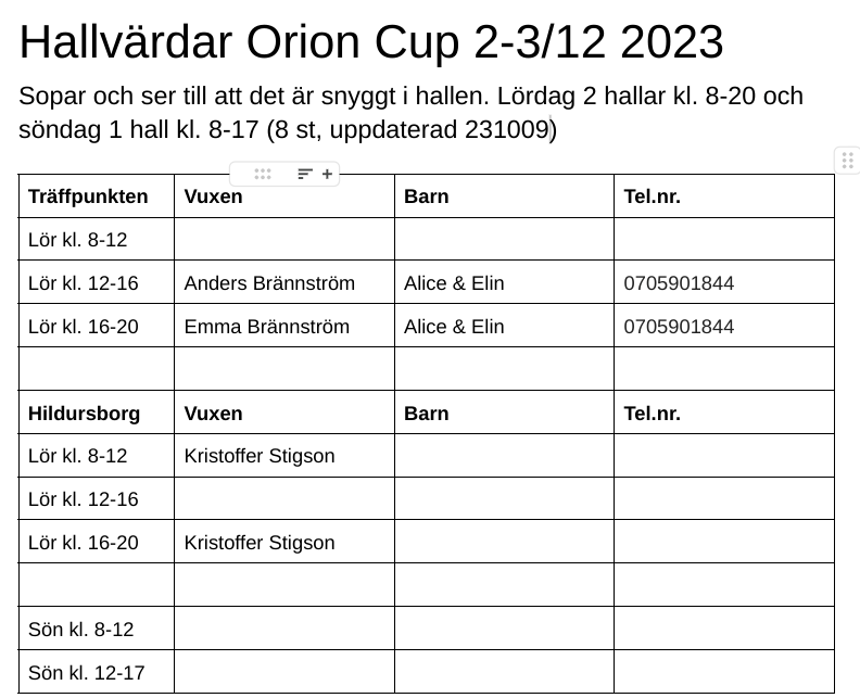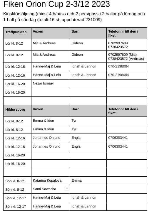Så se listorna (bilderna) på sidan Pass under OrionCup, 2-3/12, 2023